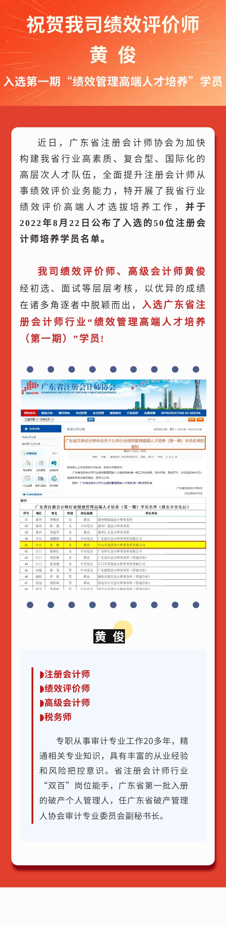 【成诺荣誉】| 我司黄俊入选广东省注册会计师行业绩效管理高端人才培养(第一期)学员名单