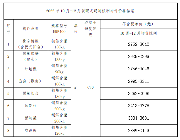 现发布2022年第四季度我省(大湾区)预制混凝土构件价格分析报告,供各方参考。