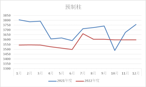 通过样本数据监测,本季度预制柱价格较上季度下降25元,环比下降0.7%。