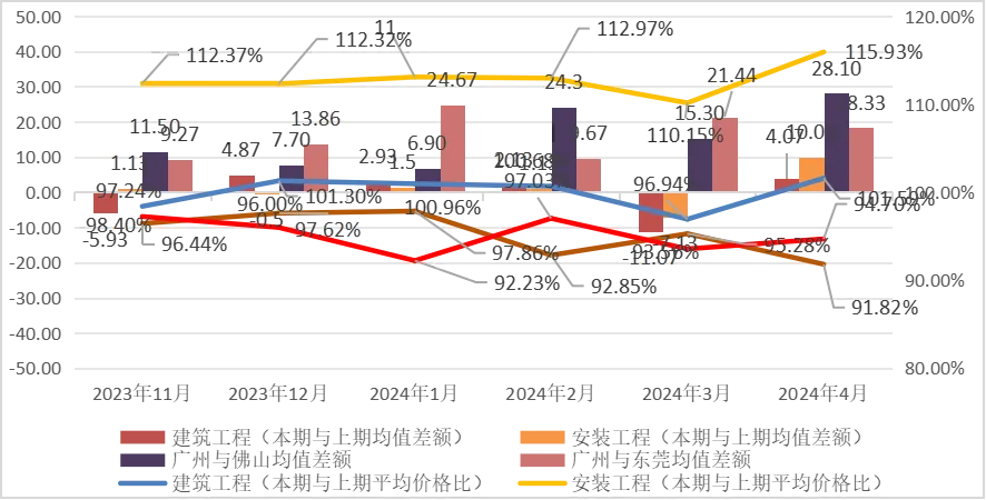 4月份,建筑工程和安装工程均价环比分别上涨1.21%和3.08%,同比上涨2.6%和3.56%;广州、佛山和东莞轨道交通工程劳务市场用工价格环比分别上涨3.06%、2.34%和1.44%;同比上涨1.85%、2.61%和0.86%。具体数据详见附件。